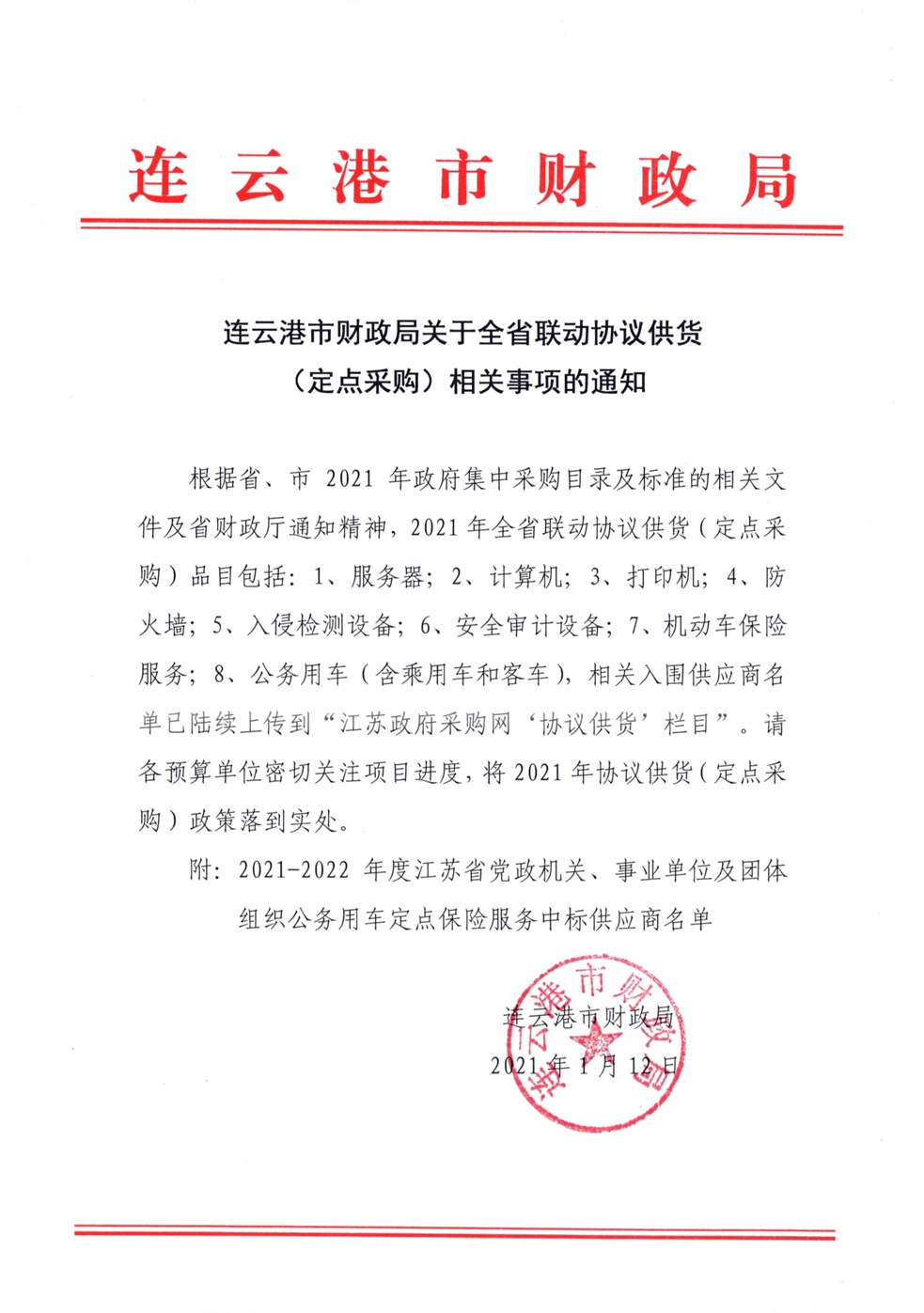连云港市财政局关于全省联动协议供货(定点采购)相关事项的通知