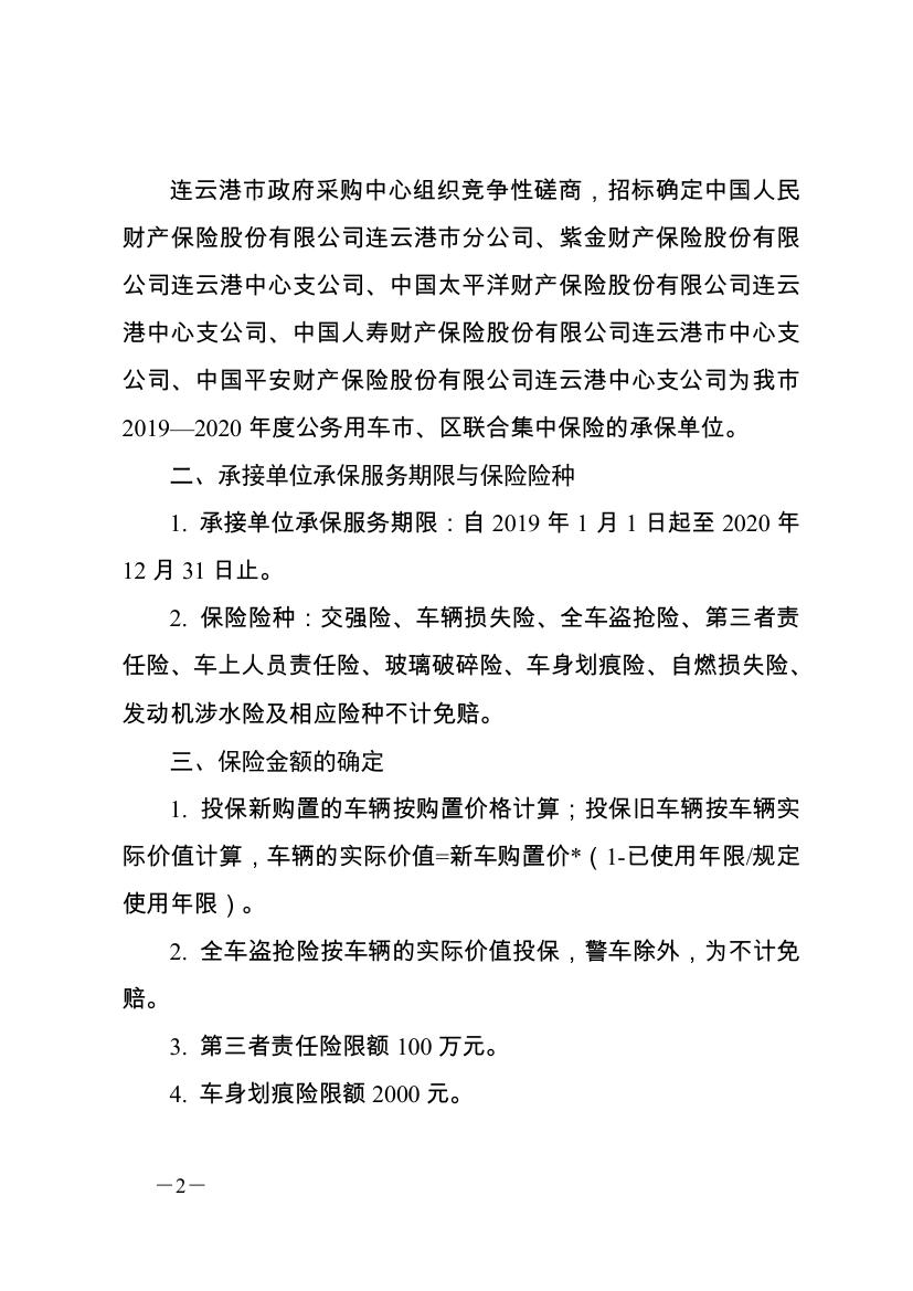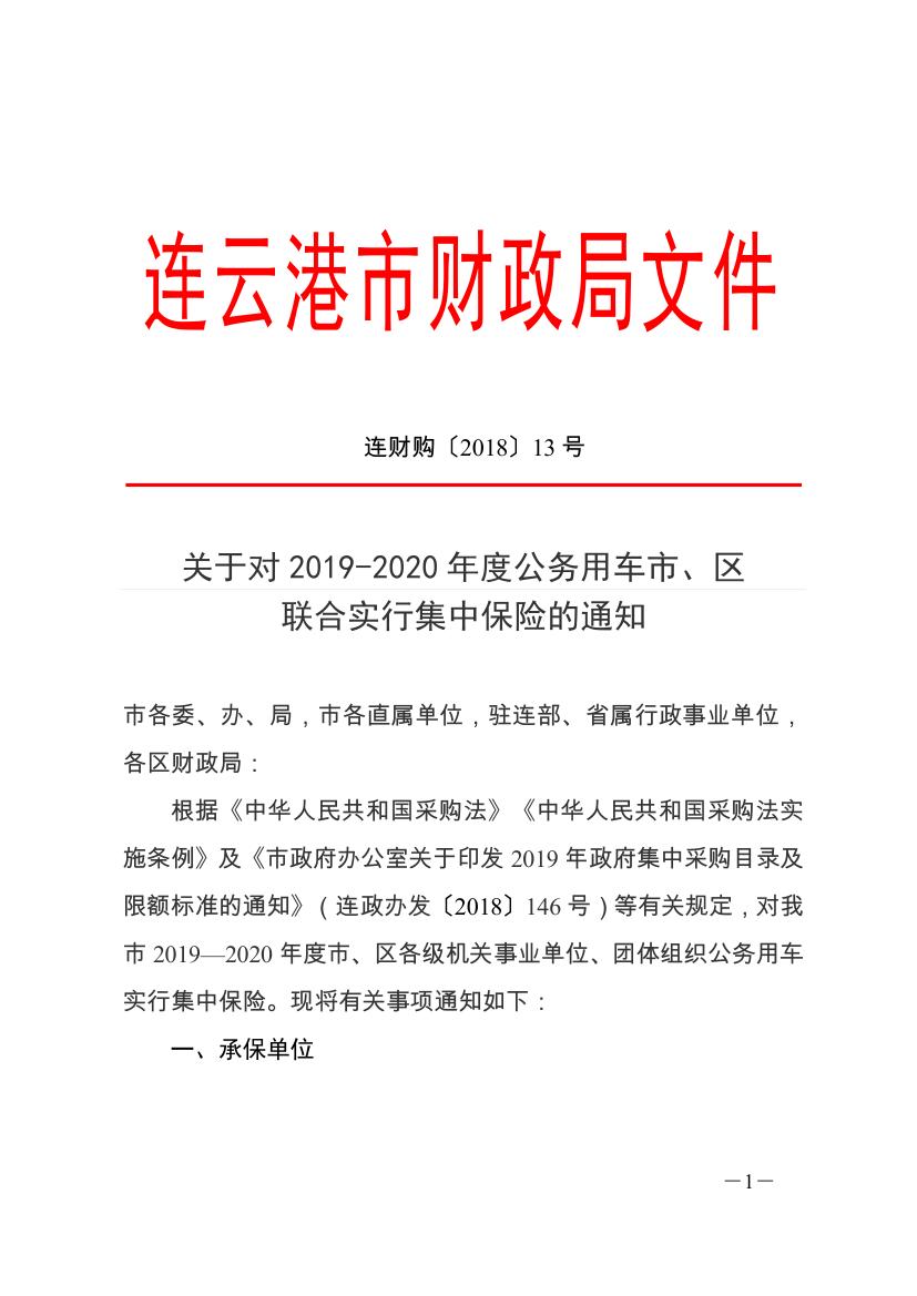 关于对2019-2020年度公务用车市、区联合实行集中保险的通知