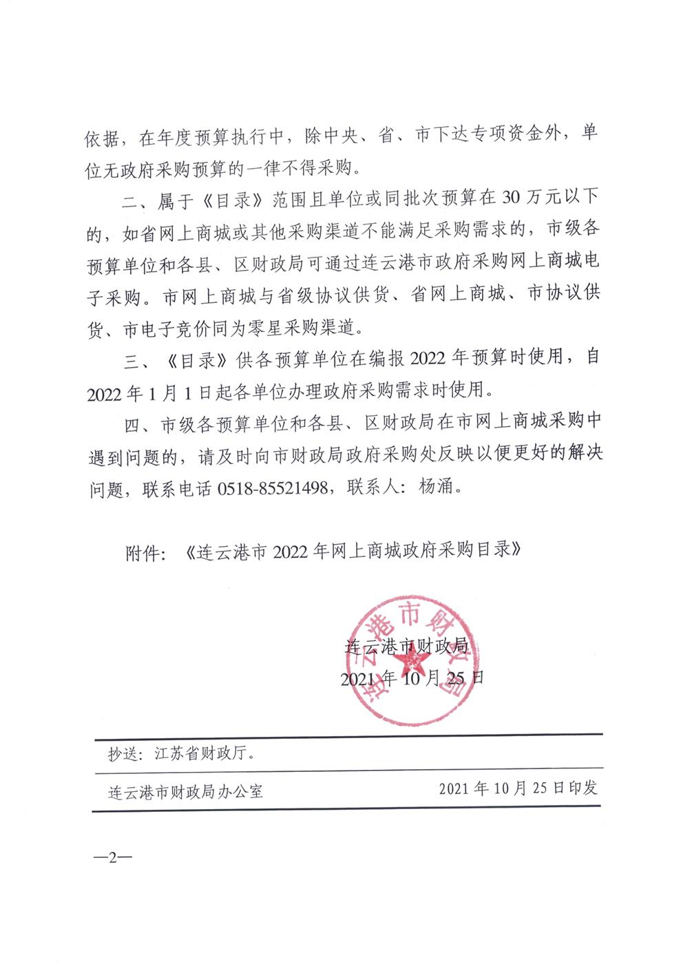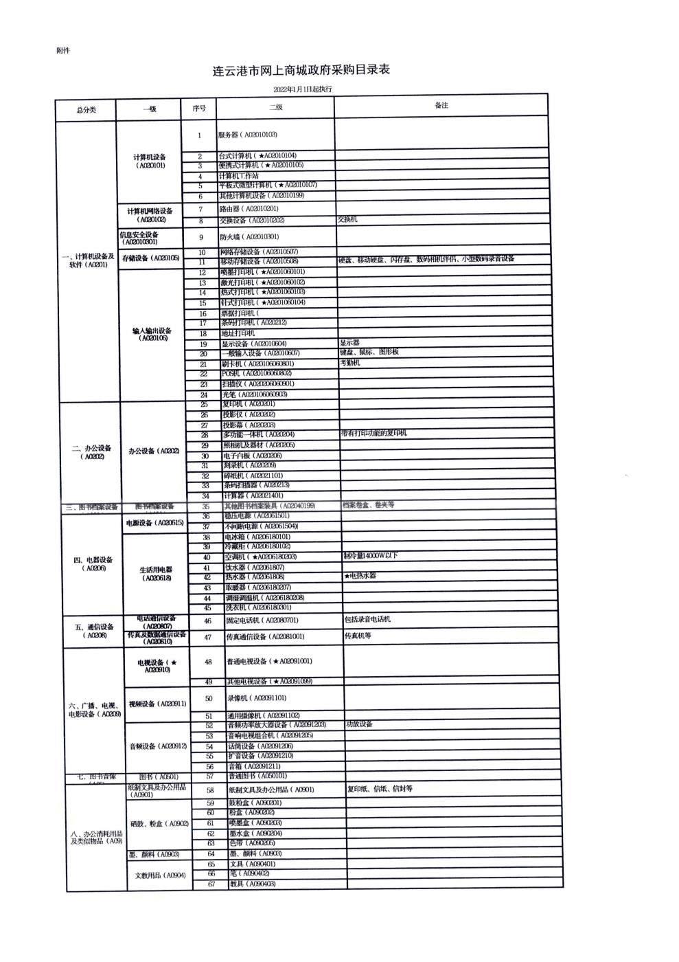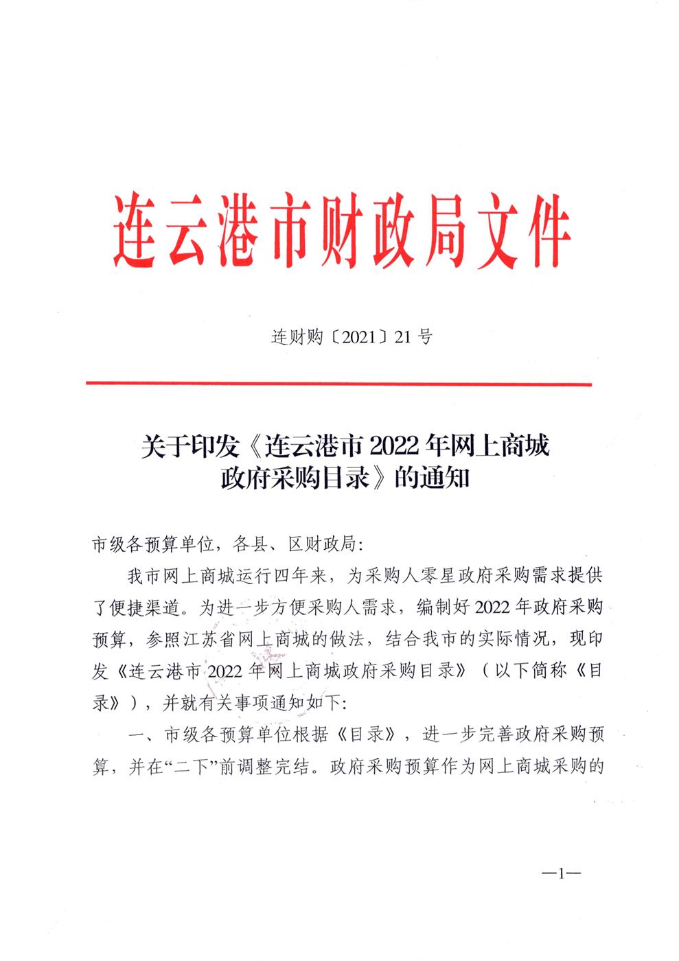 关于印发《连云港市2022年网上商城政府采购目录》的通知(连财购〔2021〕21号)