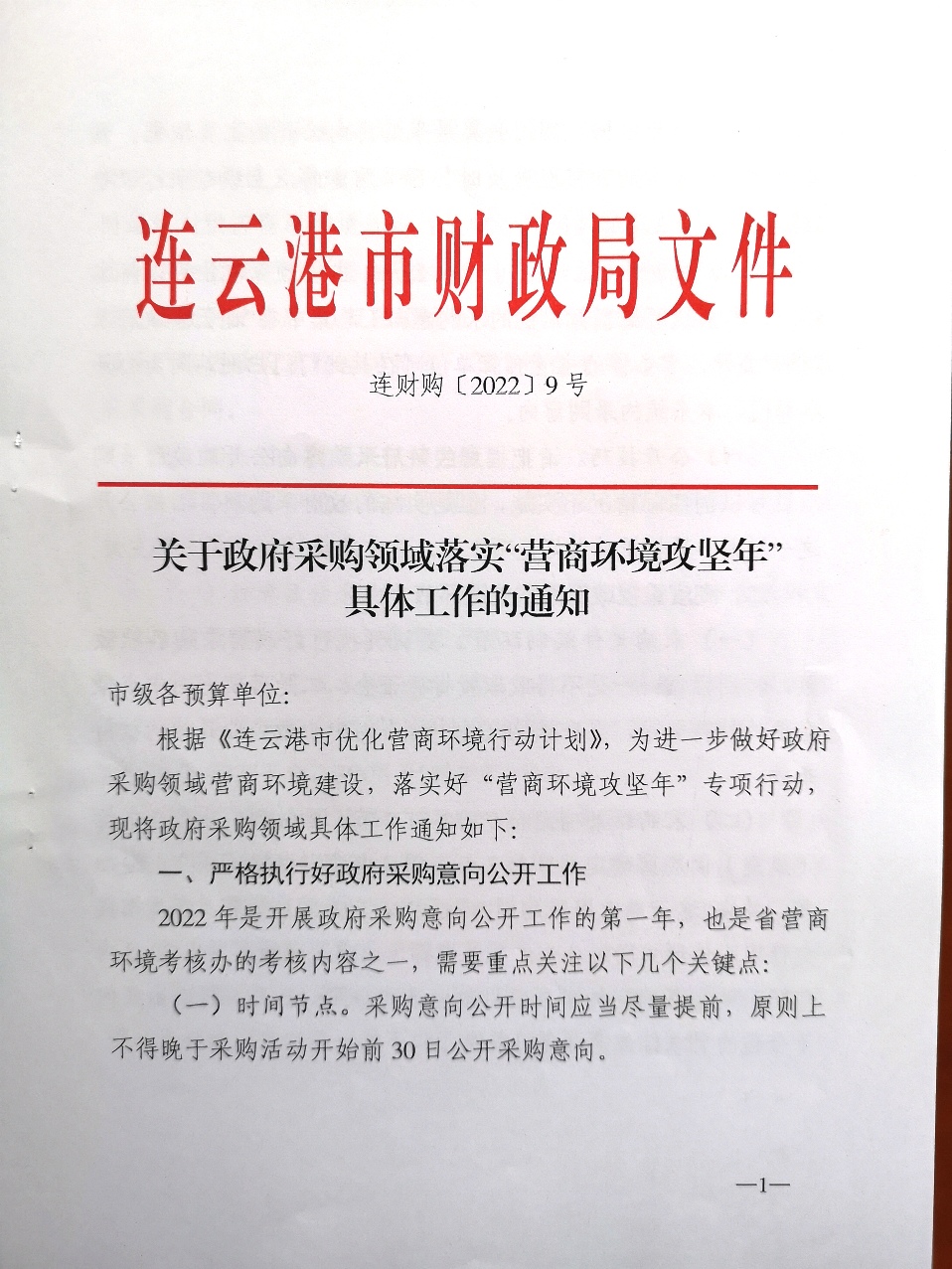 关于政府采购领域落实“营商环境攻坚年”具体工作的通知(连财购〔2022〕9号)