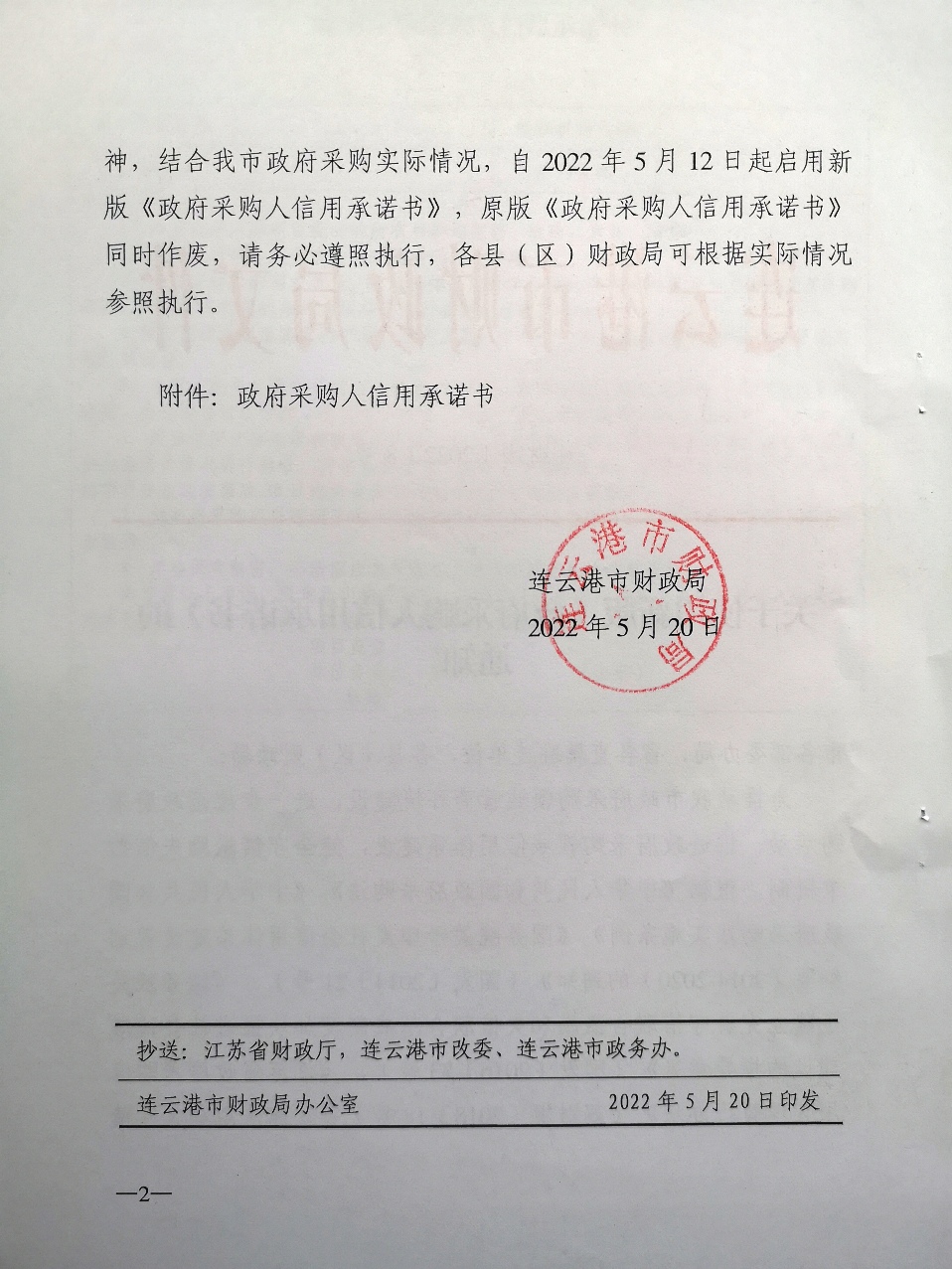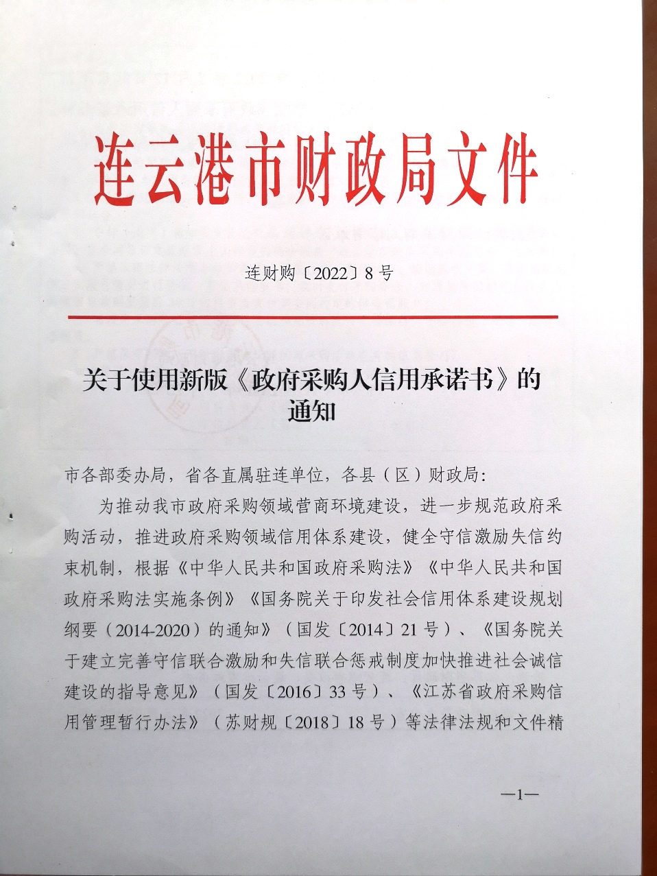 关于使用新版《政府采购人信用承诺书》的通知(连财购〔2022〕8号)