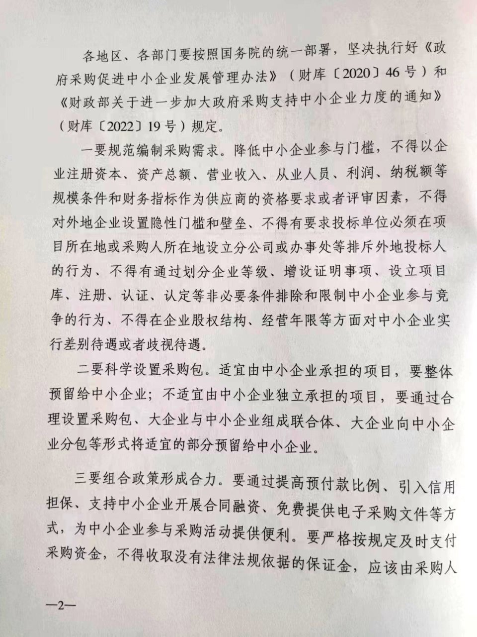 江苏省财政厅关于进一步加大政府采购支持中小企业力度的通知(苏财购〔202245号)