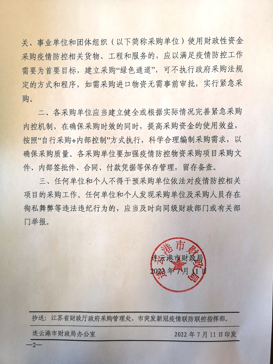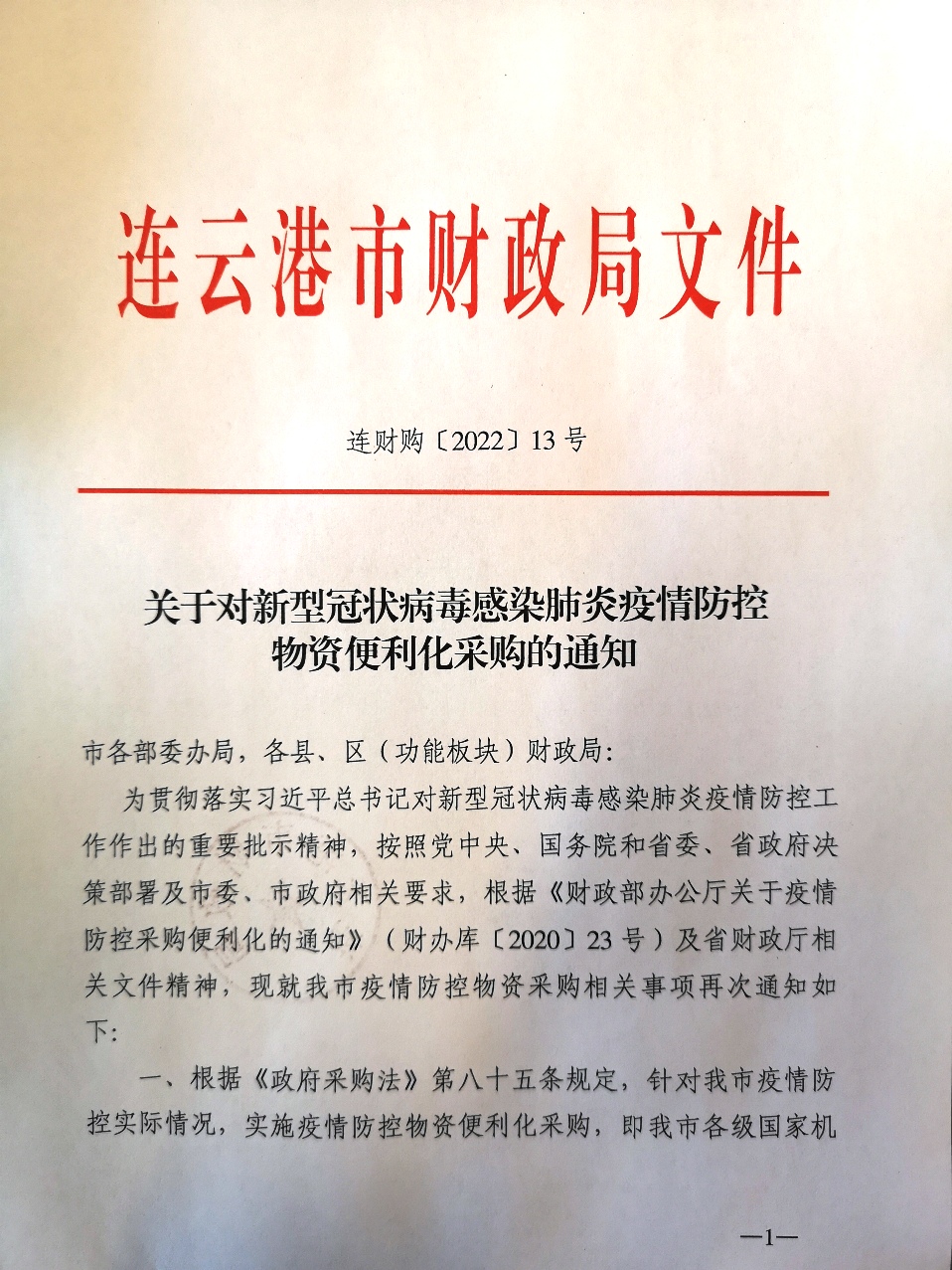 关于对新型冠状病毒感染肺炎疫情防控物资便利化采购的通知(连财购〔2022〕13号)