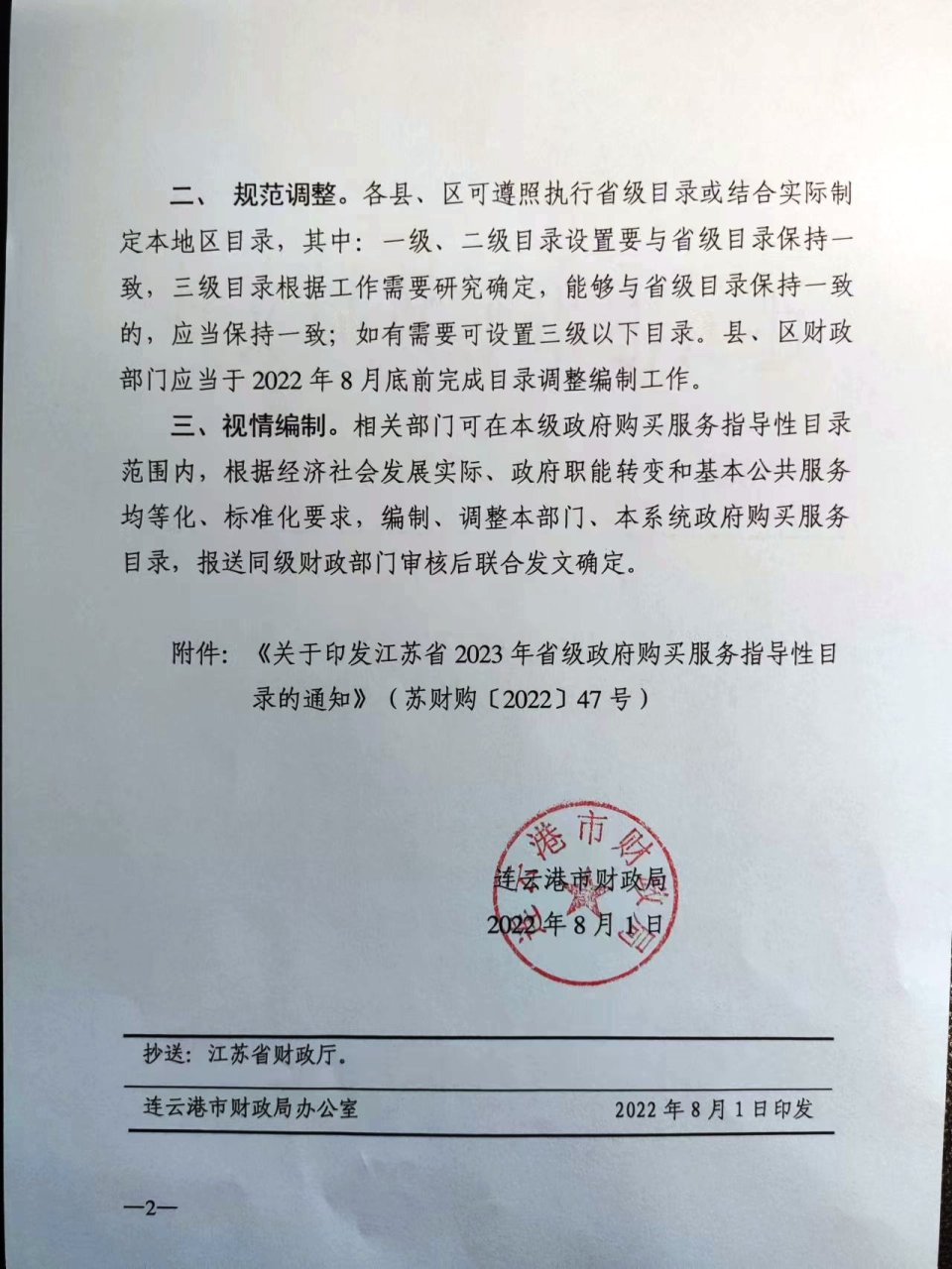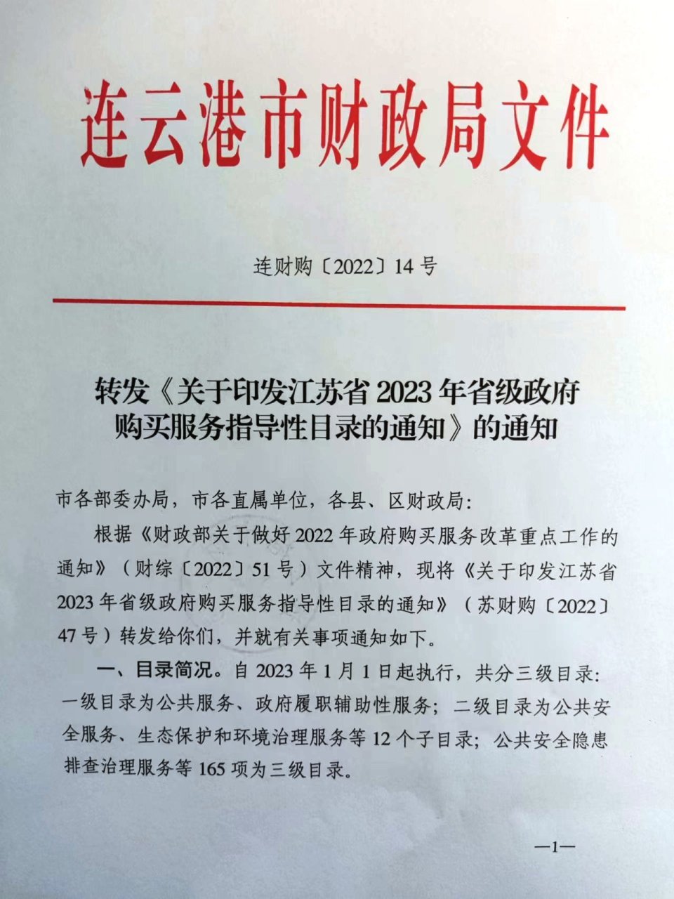 转发《关于印发江苏省2023年省级政府购买服务指导性目录的通知》的通知(连财购〔2022〕14号)
