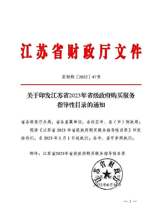 关于印发江苏省2023年省级政府购买服务指导性目录的通知(苏财购〔2022〕47号)