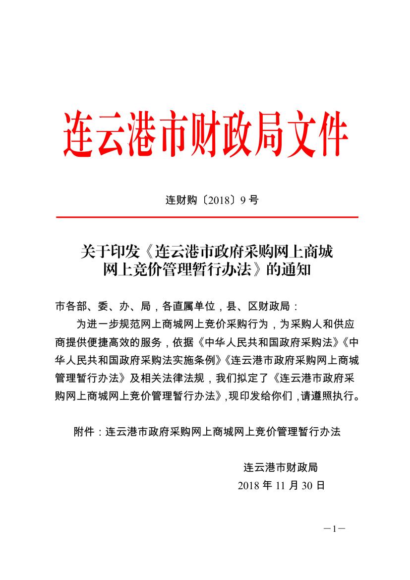 关于印发《连云港市政府采购网上商城 网上竞价管理暂行办法》的通知