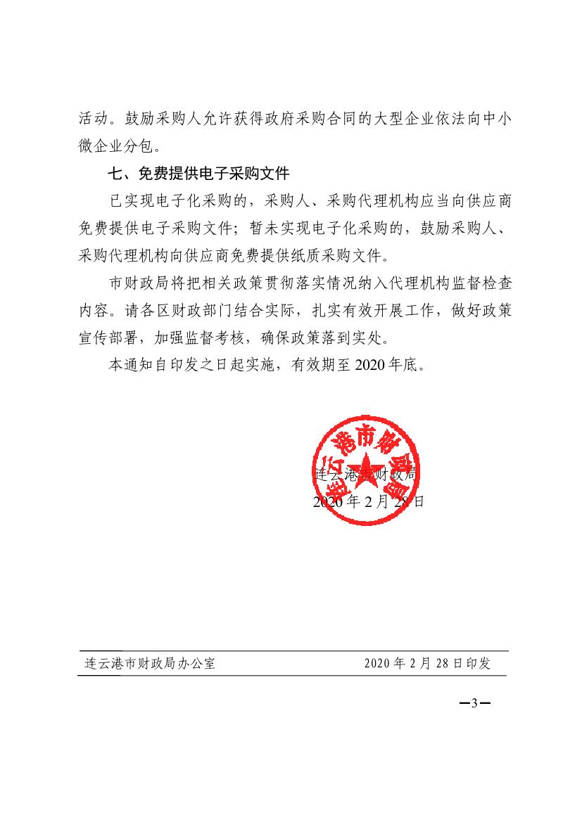 关于新冠肺炎疫情防控期间加大政府采购支持中小微企业力度的通知(连财购〔2020〕7号)
