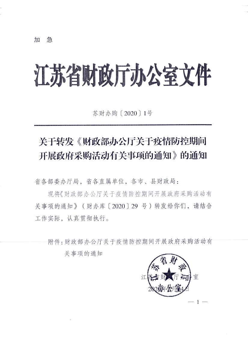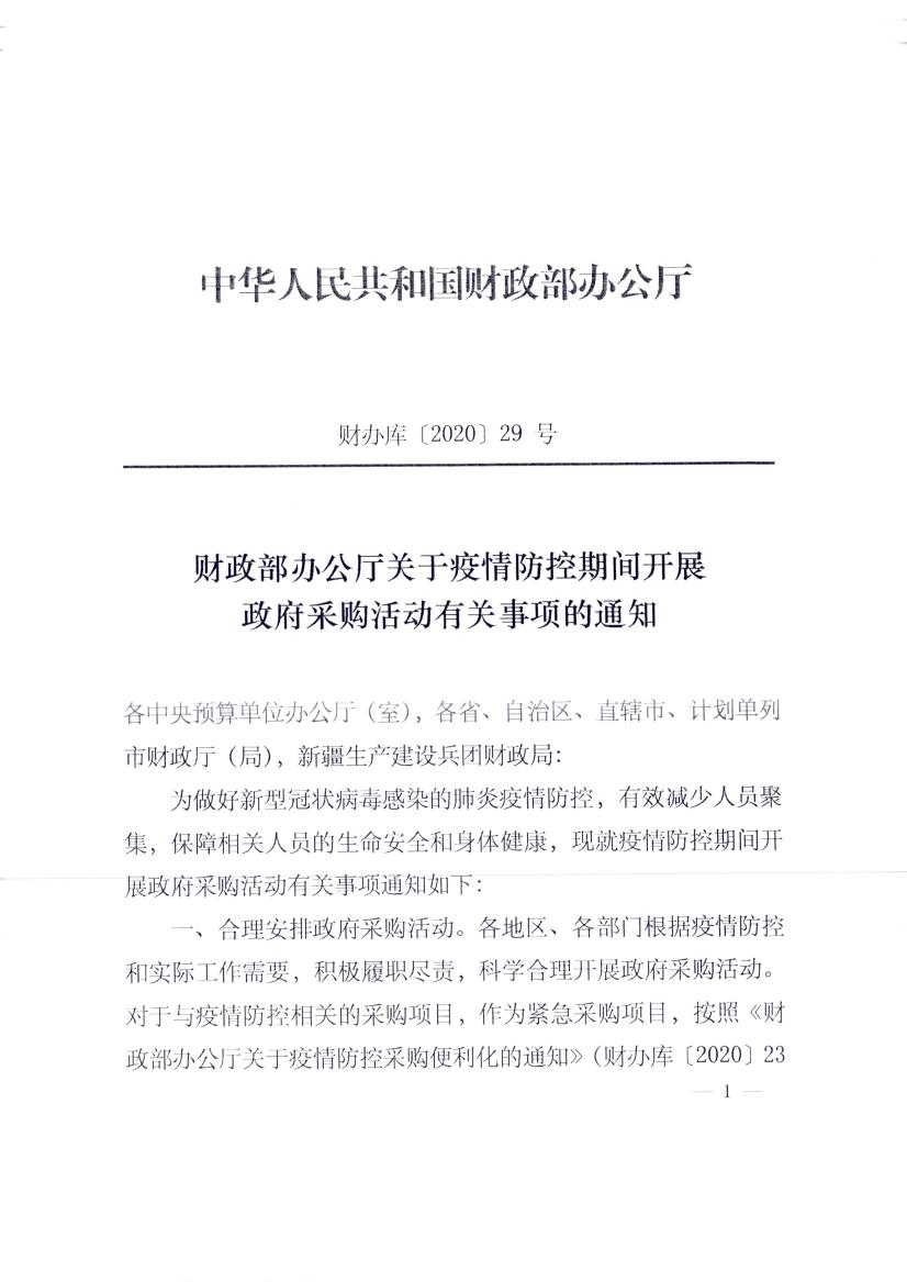 转发财政部办公厅关于疫情防控采购期间开展政府采购活动有关事项的通知(连财购〔2020〕5号)