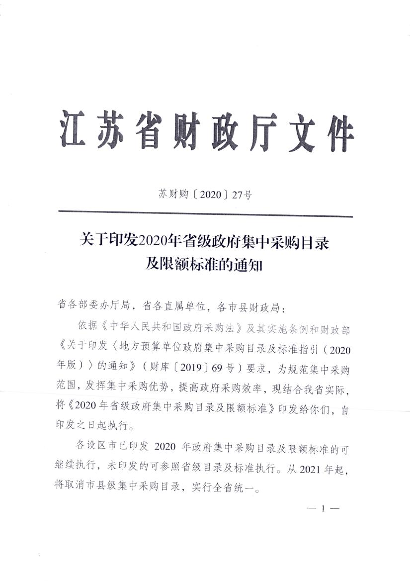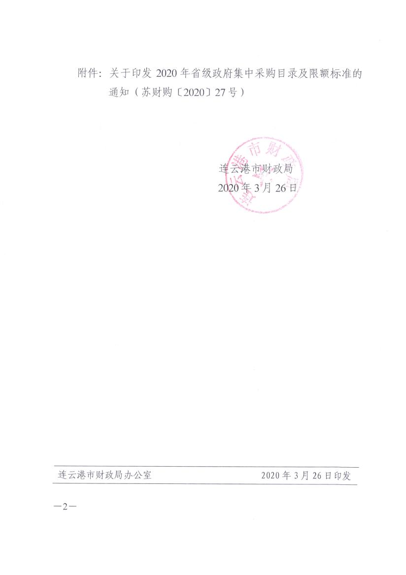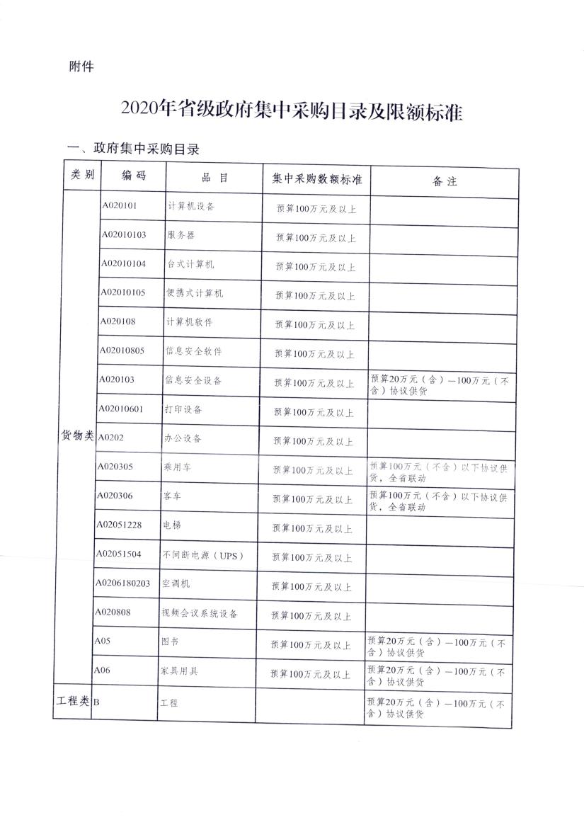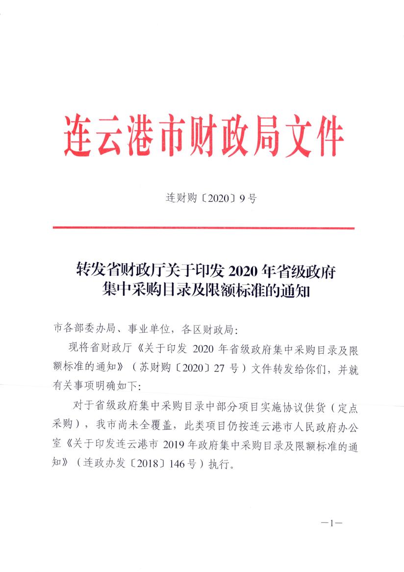 转发省财政厅关于印发2020年省级政府集中采购目录及限额标准的通知(连财购〔2020〕9号)
