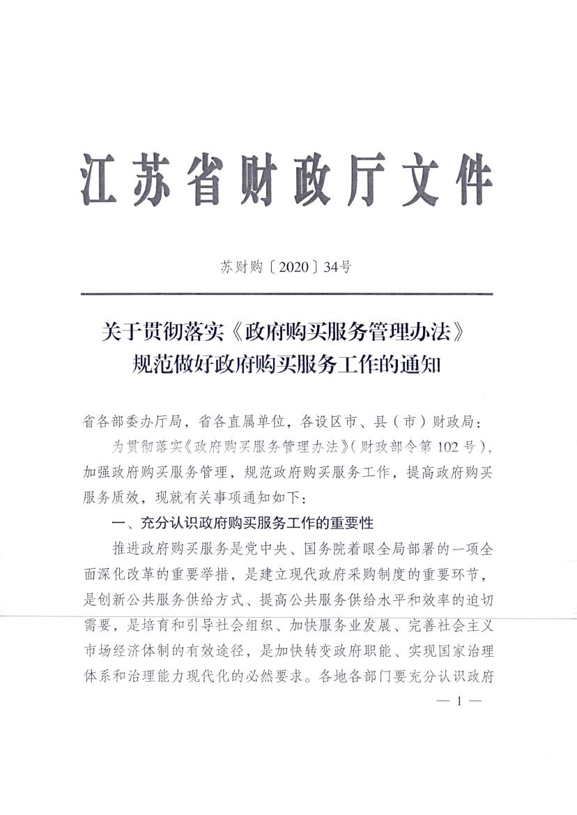 转发江苏省财政厅关于贯彻落实《政府购买服务管理办法》规范做好政府购买服务工作的通知(连财购〔2020〕14号)