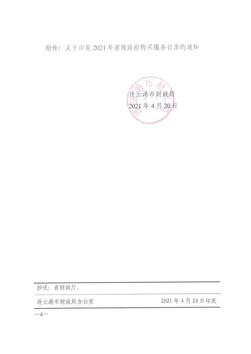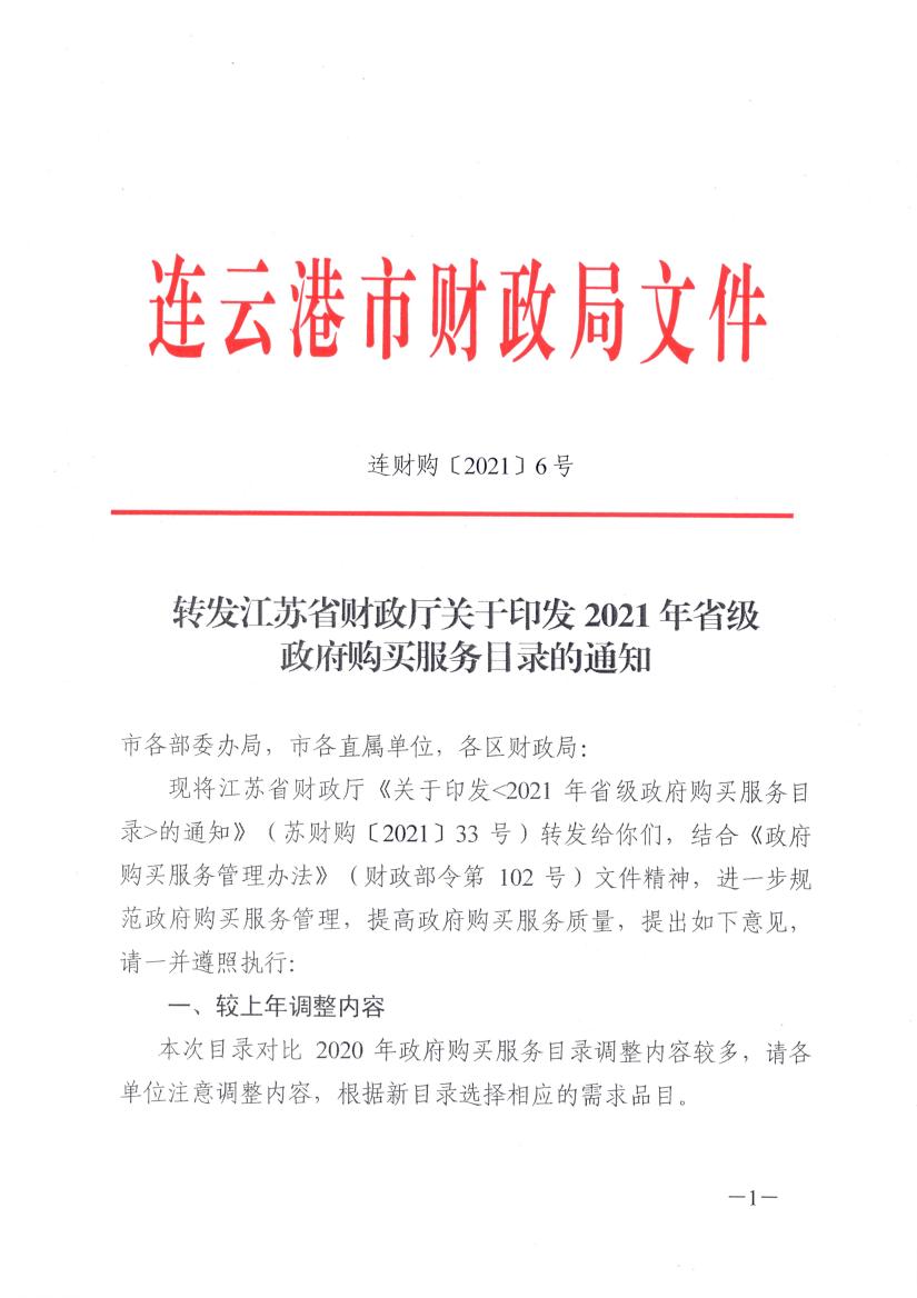 转发江苏省财政厅关于印发2021年省级政府购买服务目录的通知(连财购〔2021〕6号)