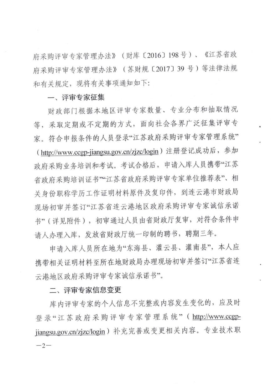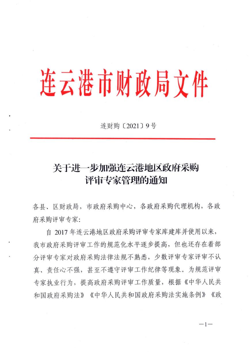 关于进一步加强连云港地区政府采购评审专家管理的通知(连财购〔2021〕9号)
