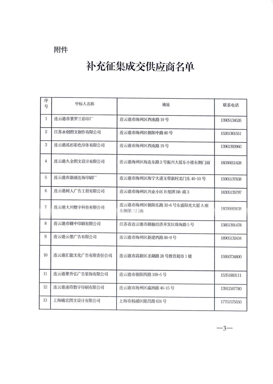关于补充连云港市紫罗兰彩印厂等13户企业为2021—2022年度市区公务印刷定点企业的通知(连财购〔2021〕17号)