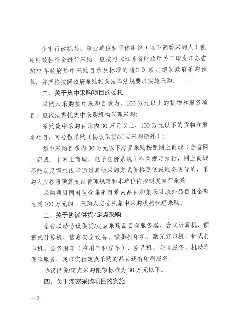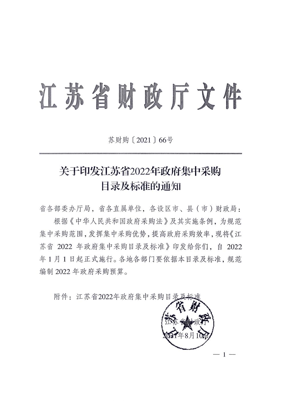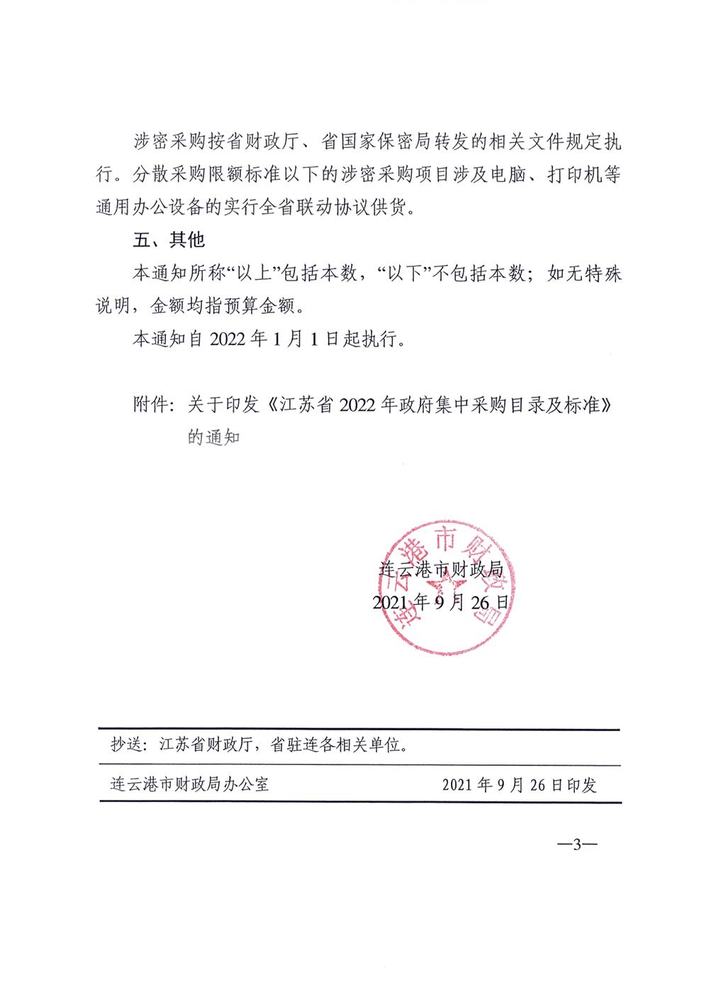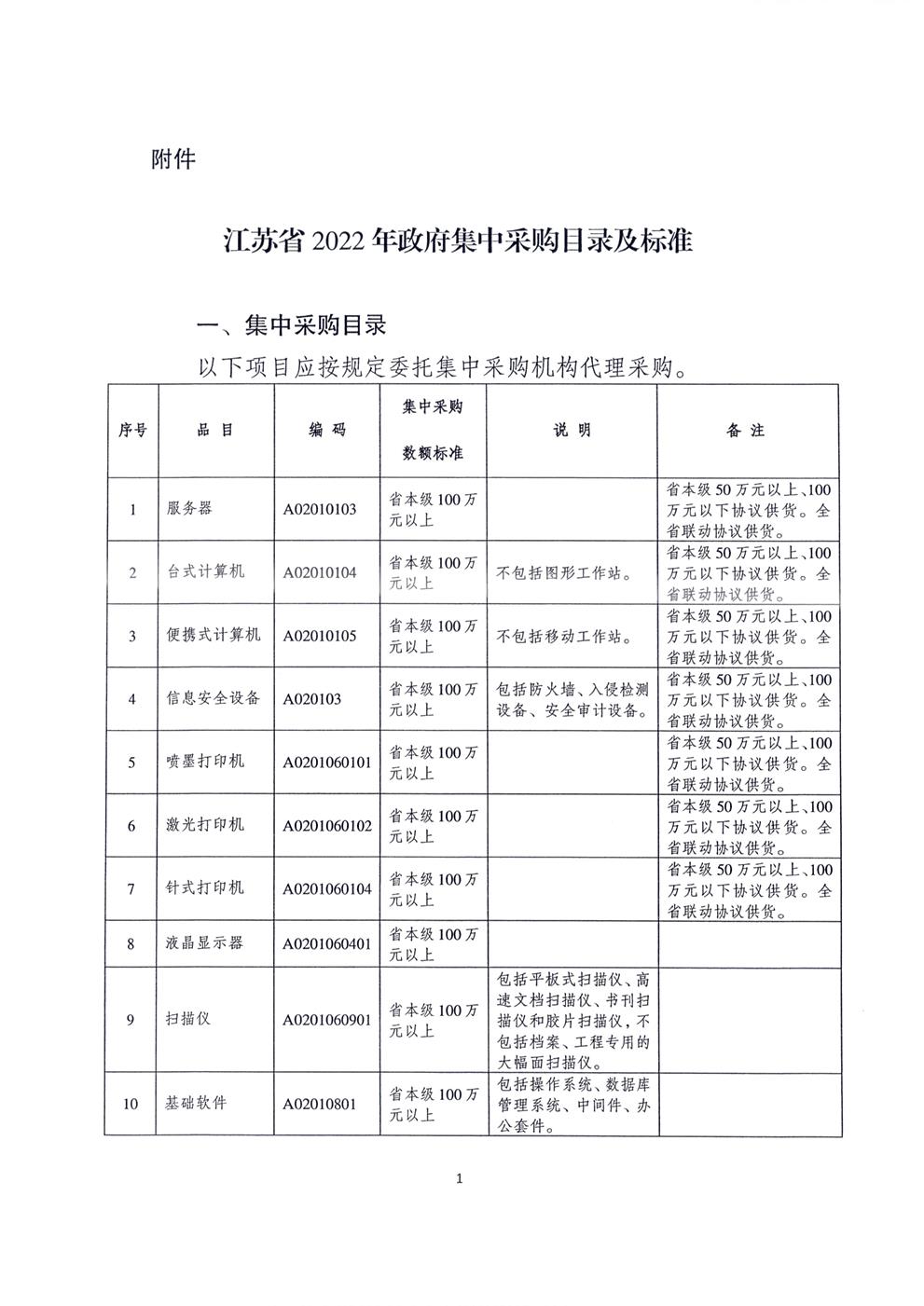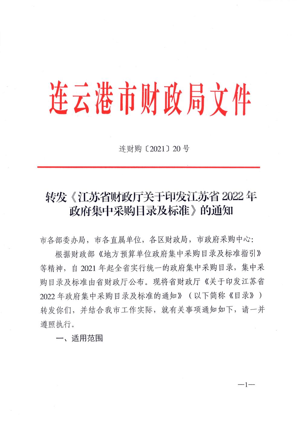 转发《江苏省财政厅关于印发江苏省2022年政府集中采购目录及标准》的通知(连财购〔2021〕20号)