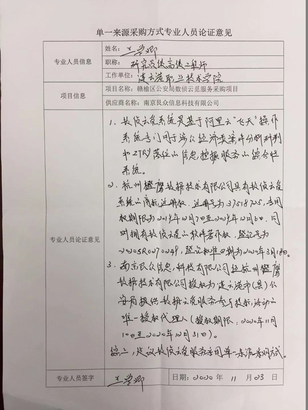专业人员论证意见