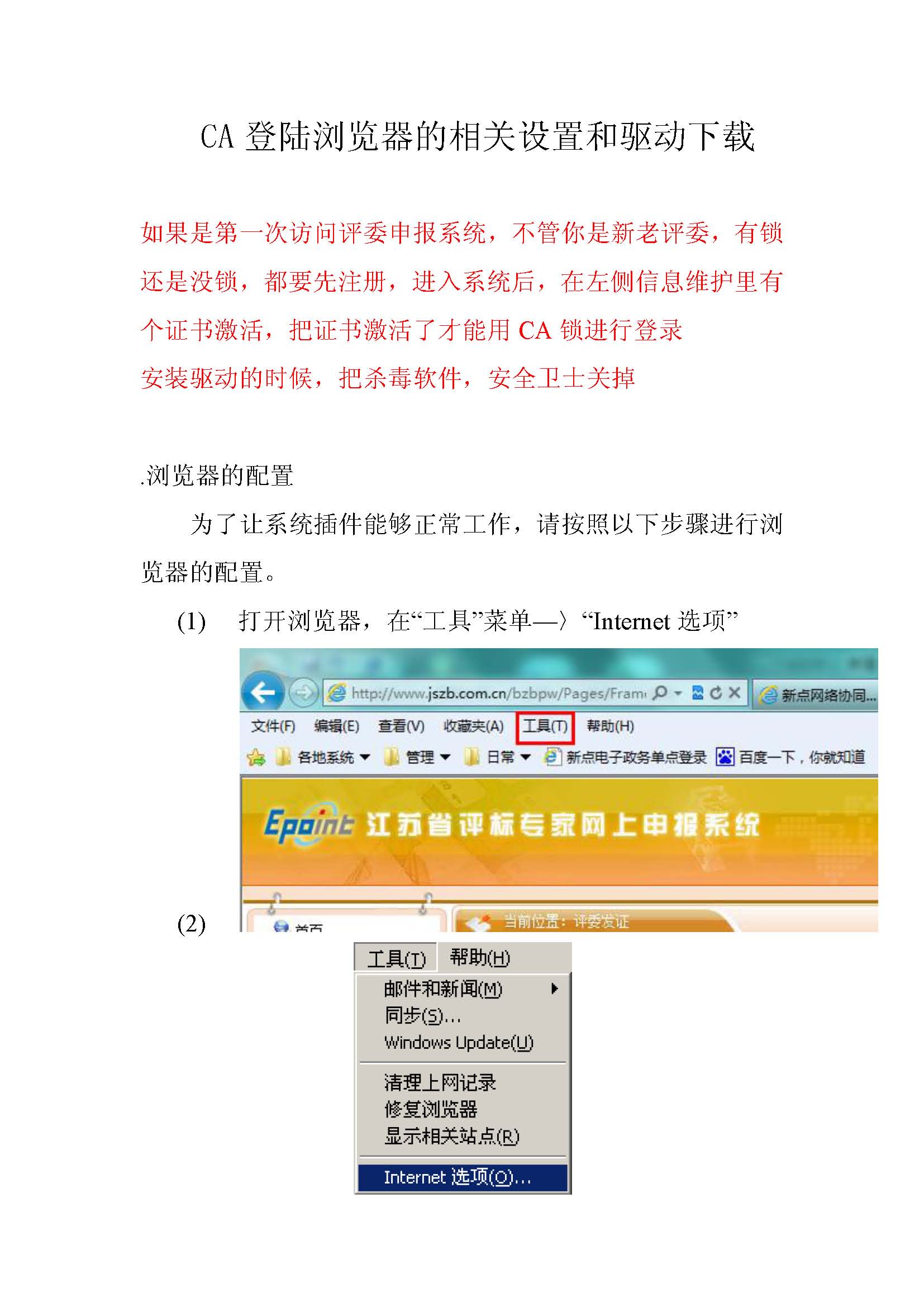 关于“CA登陆浏览器的相关设置和驱动下载”的通知