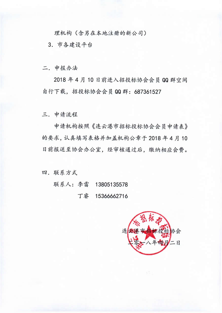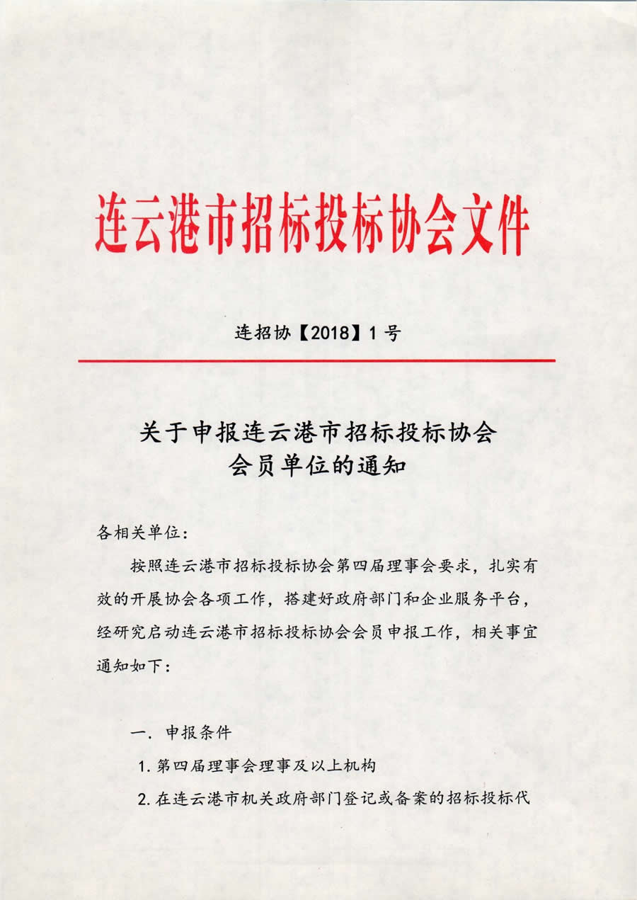关于申报连云港市招标投标协会会员单位的通知