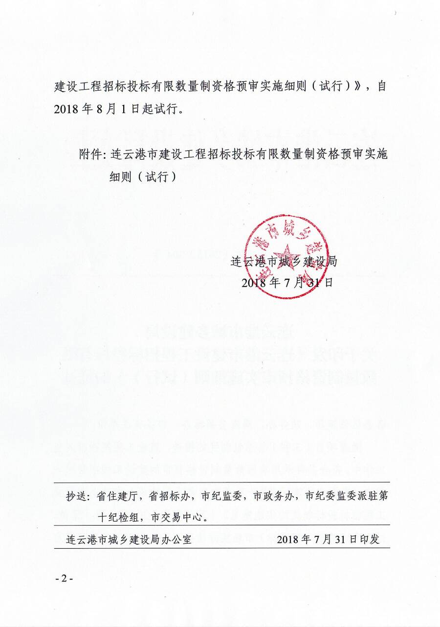 关于印发《连云港市建设工程招标投标有限数量制资格预审实施细则(试行)》的通知 连建发[2018]304号