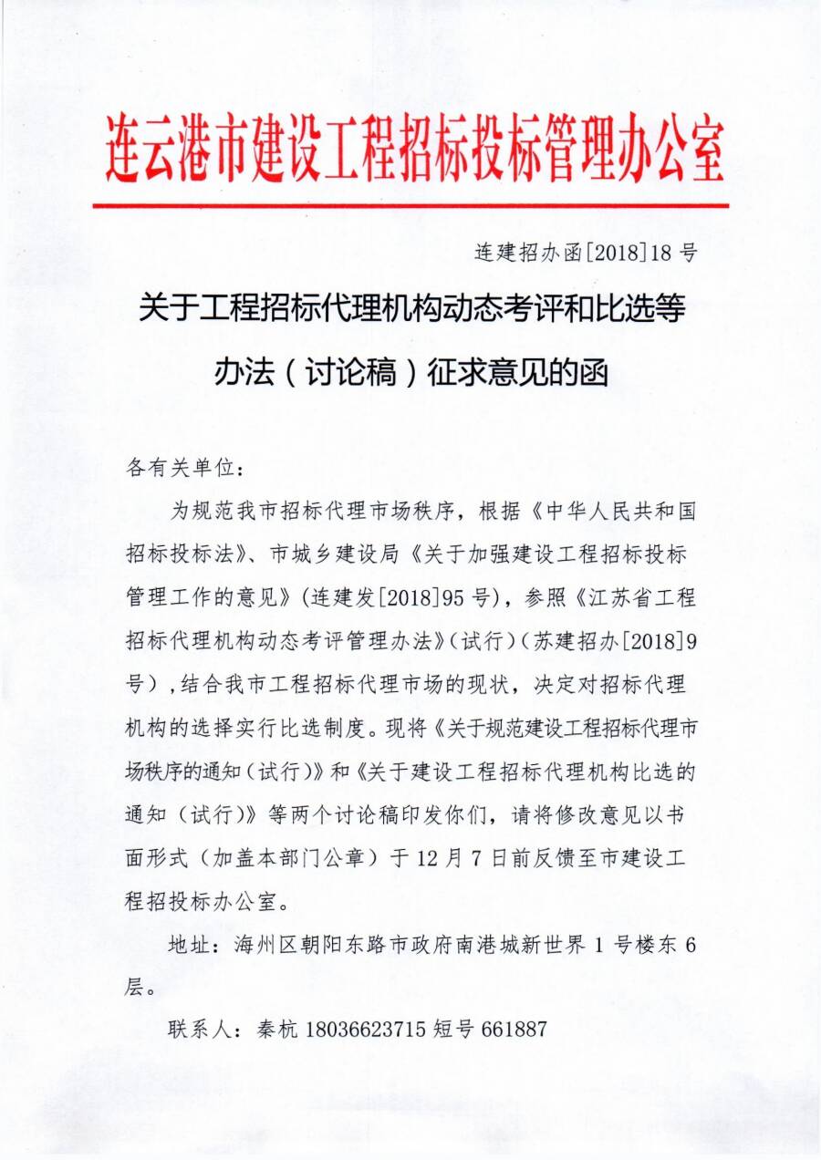 关于工程招标代理机构动态考评和比选等办法(讨论稿)征求意见的函