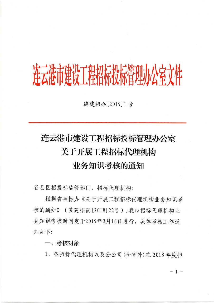 关于开展工程招标代理机构业务知识考核的通知 连建招办[2019]1号