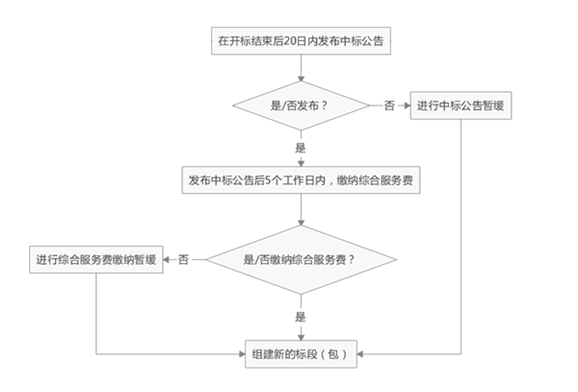 1、请在开标后20日内发布中标公告,逾期则无法组建新的标段(包),如有特殊情况可暂缓中标公告发布(需要填写暂缓原因,上传证明附件,审核通过方能成功暂缓);