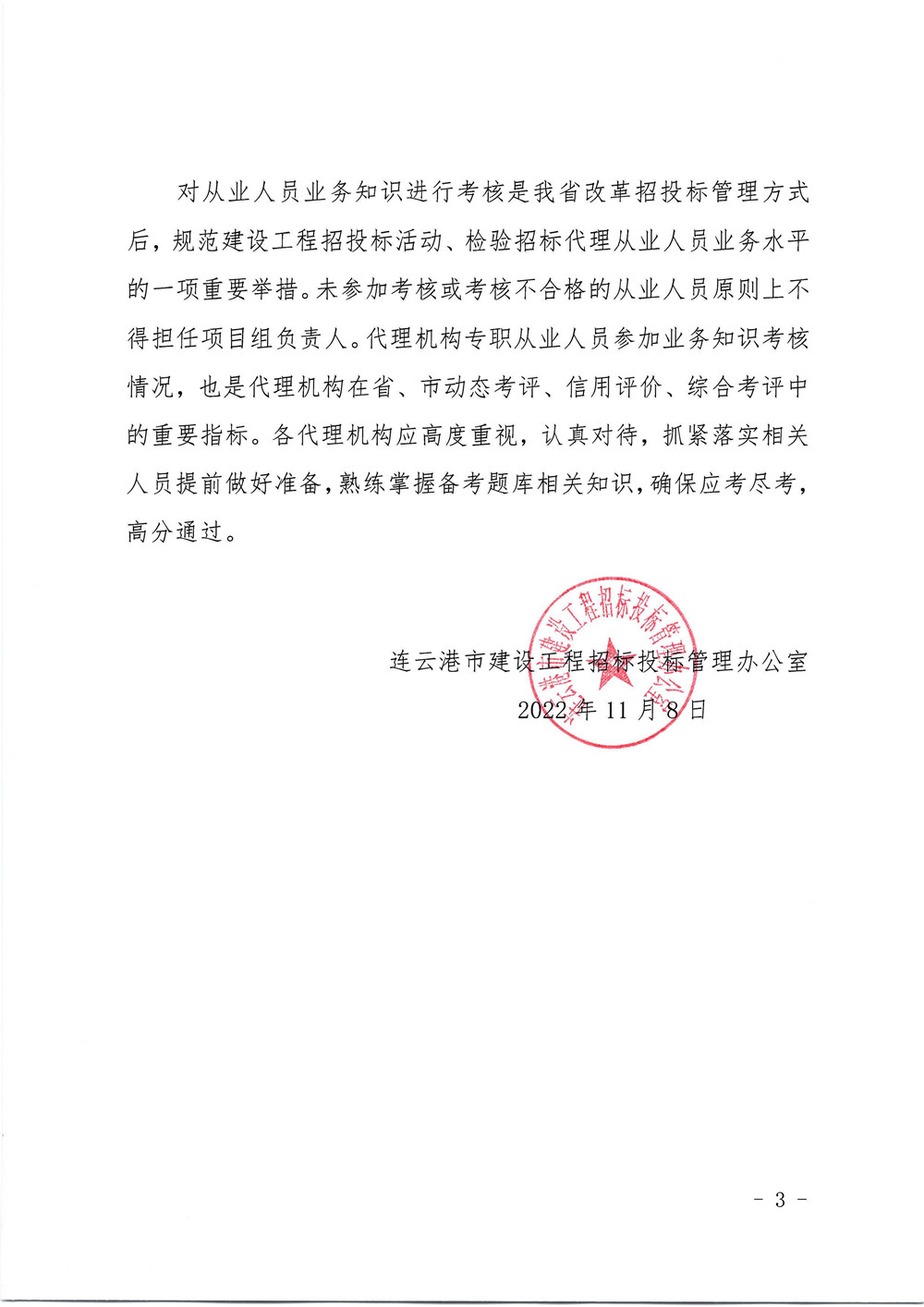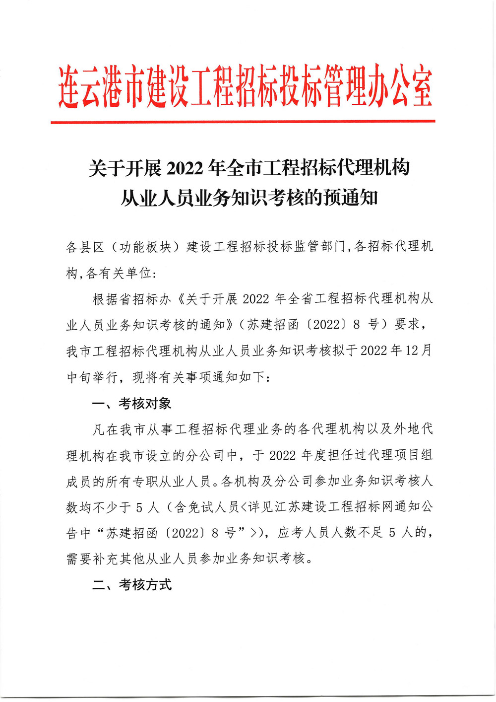 关于开展2022年全市工程招标代理机构从业人员业务知识考核的预通知