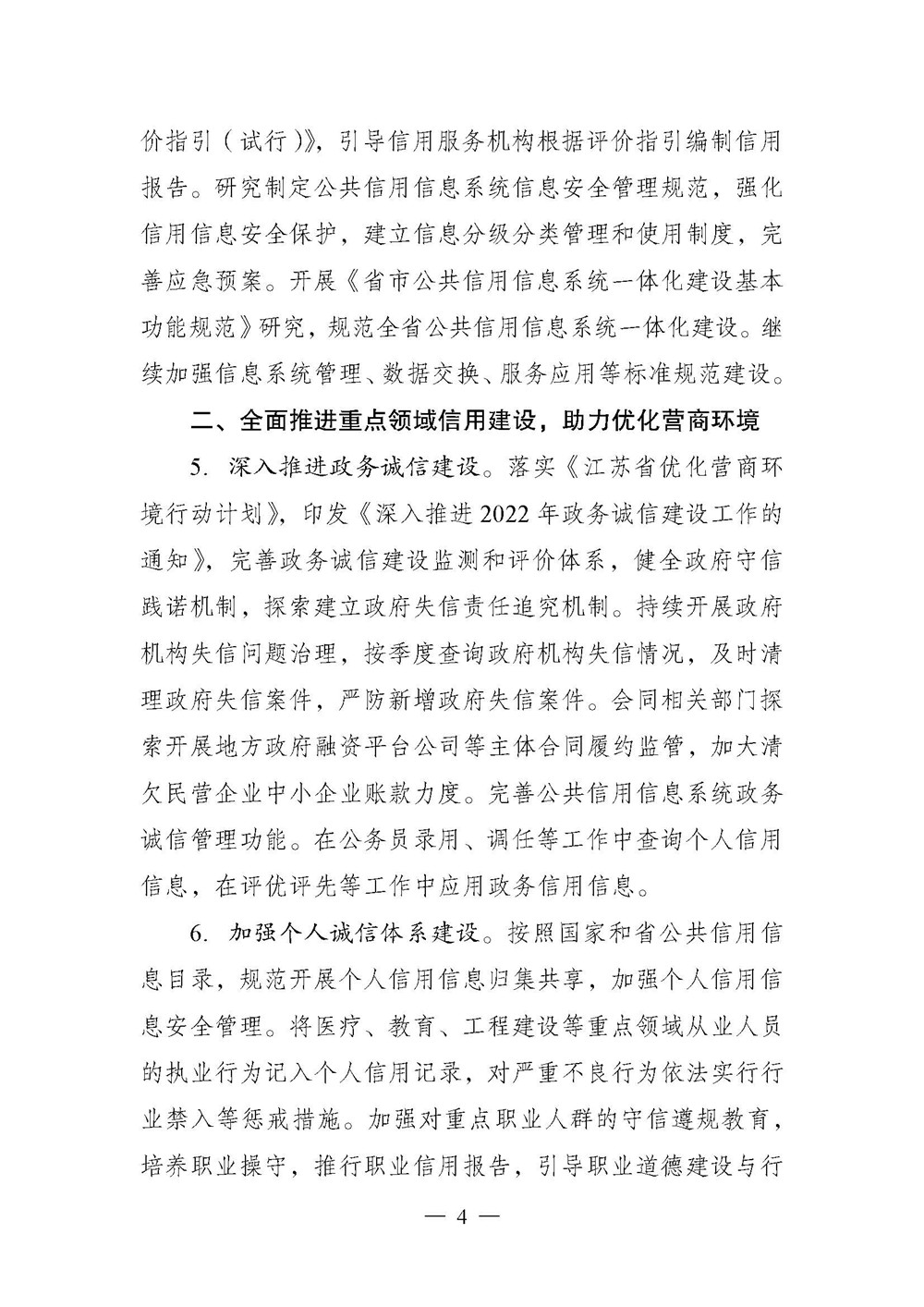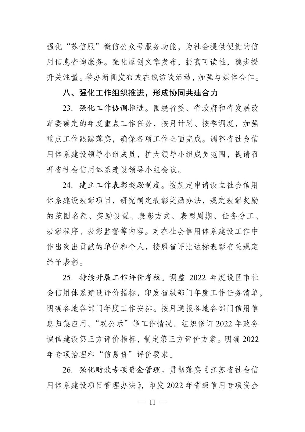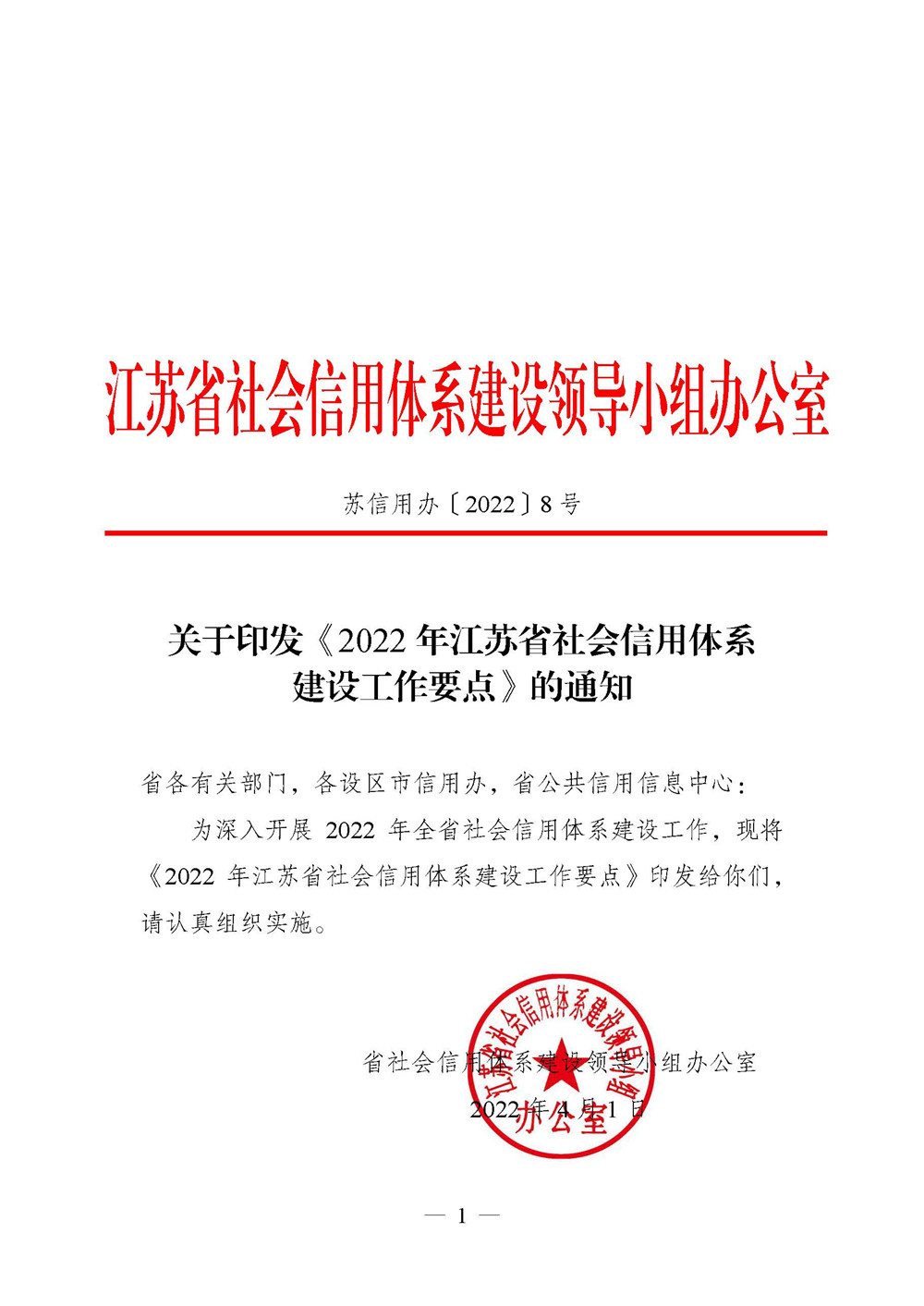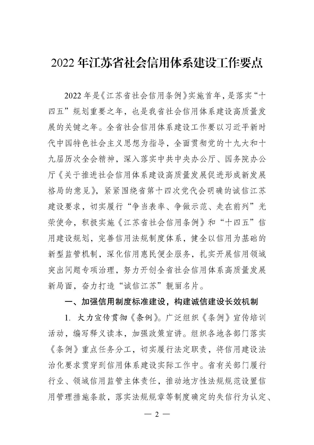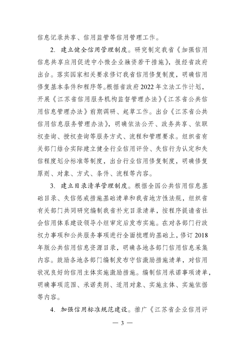 关于印发《2022江苏省社会信用体系建设工作要点》的通知