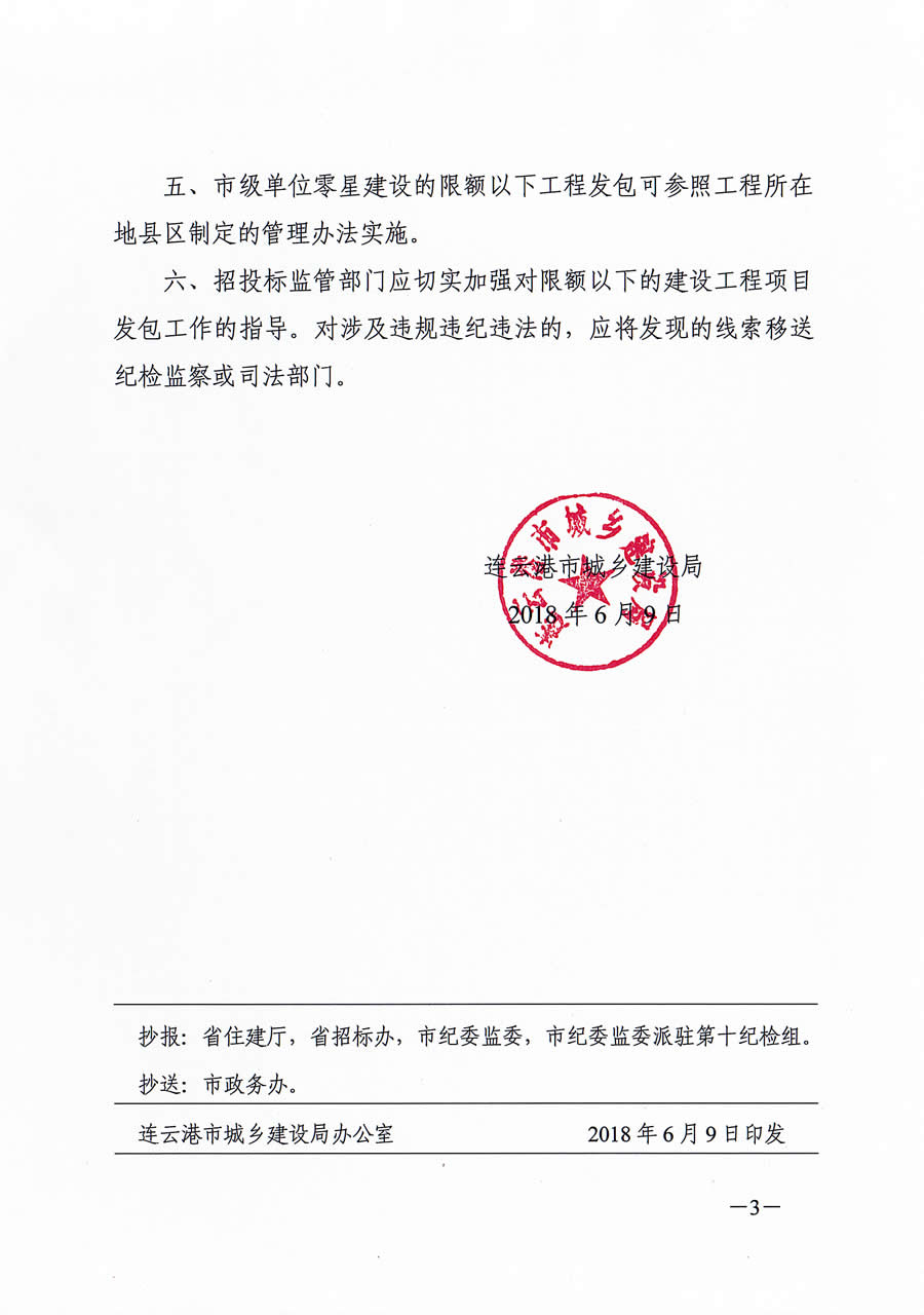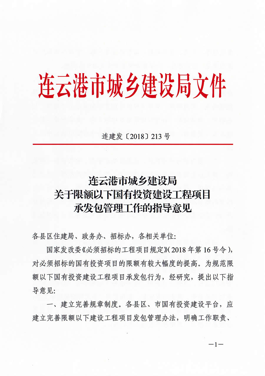 关于限额以下国有投资建设工程项目承发包管理工作的指导意见 连建发[2018]213号