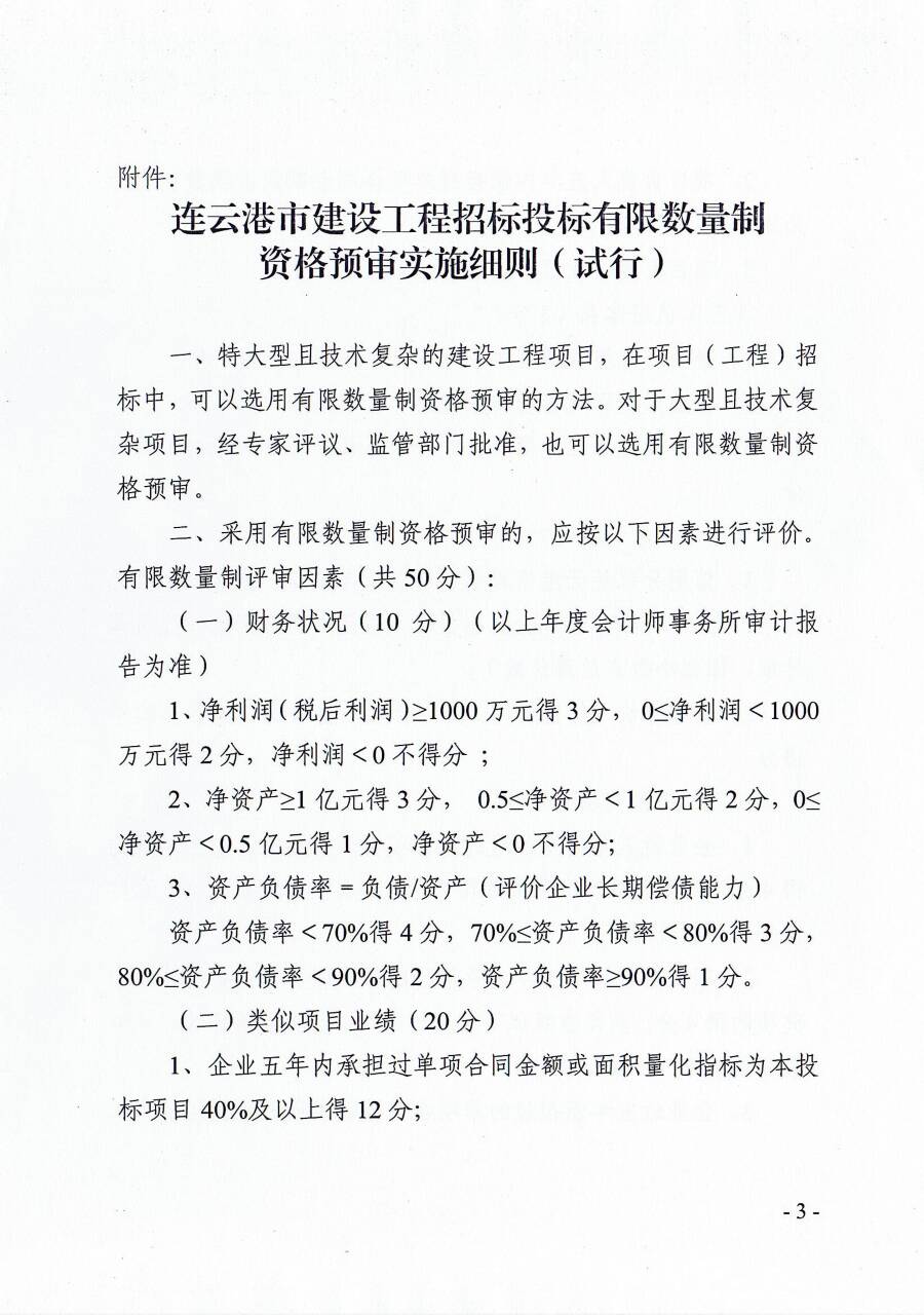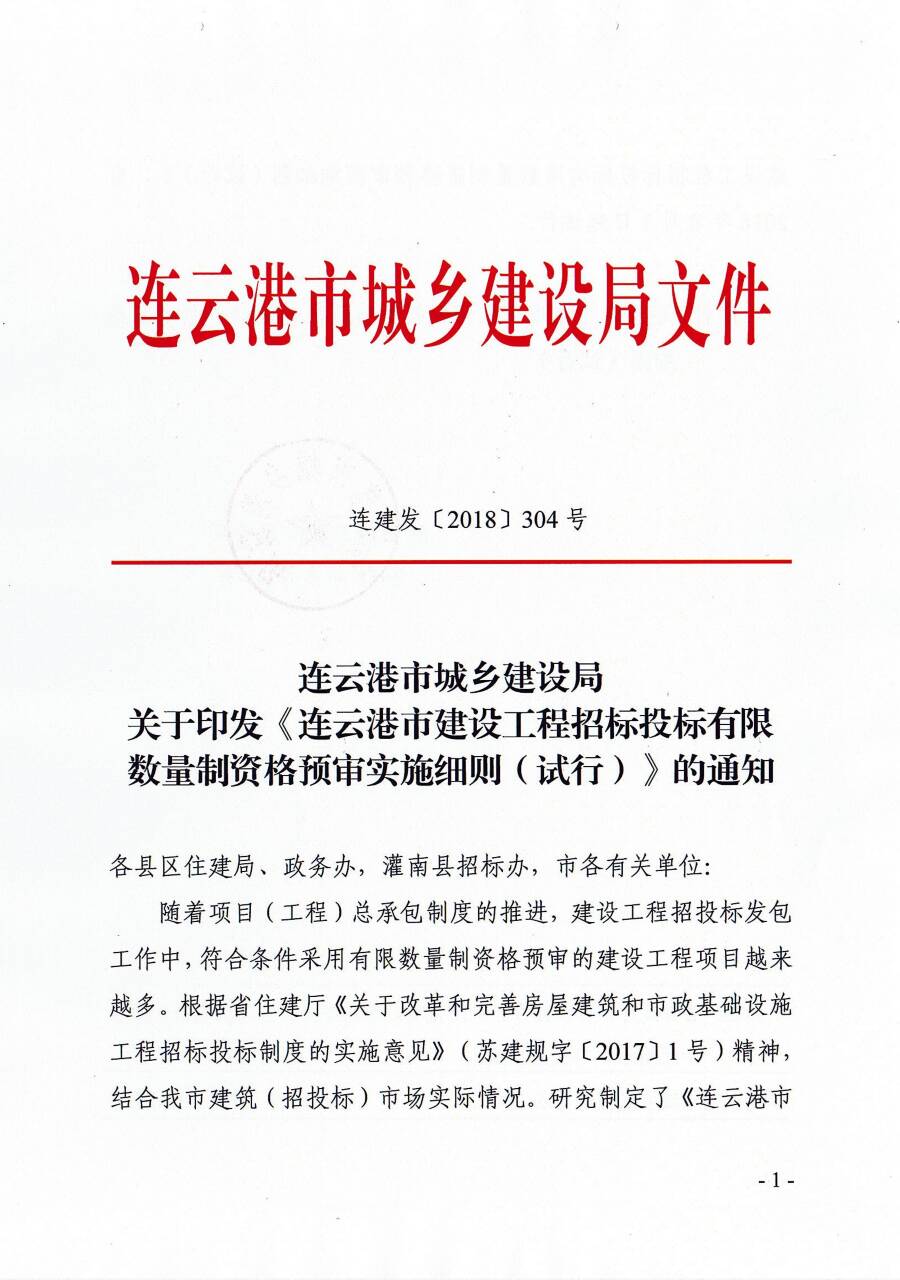 关于印发《连云港市建设工程招标投标有限数量制资格预审实施细则(试行)》的通知 连建发[2018]304号