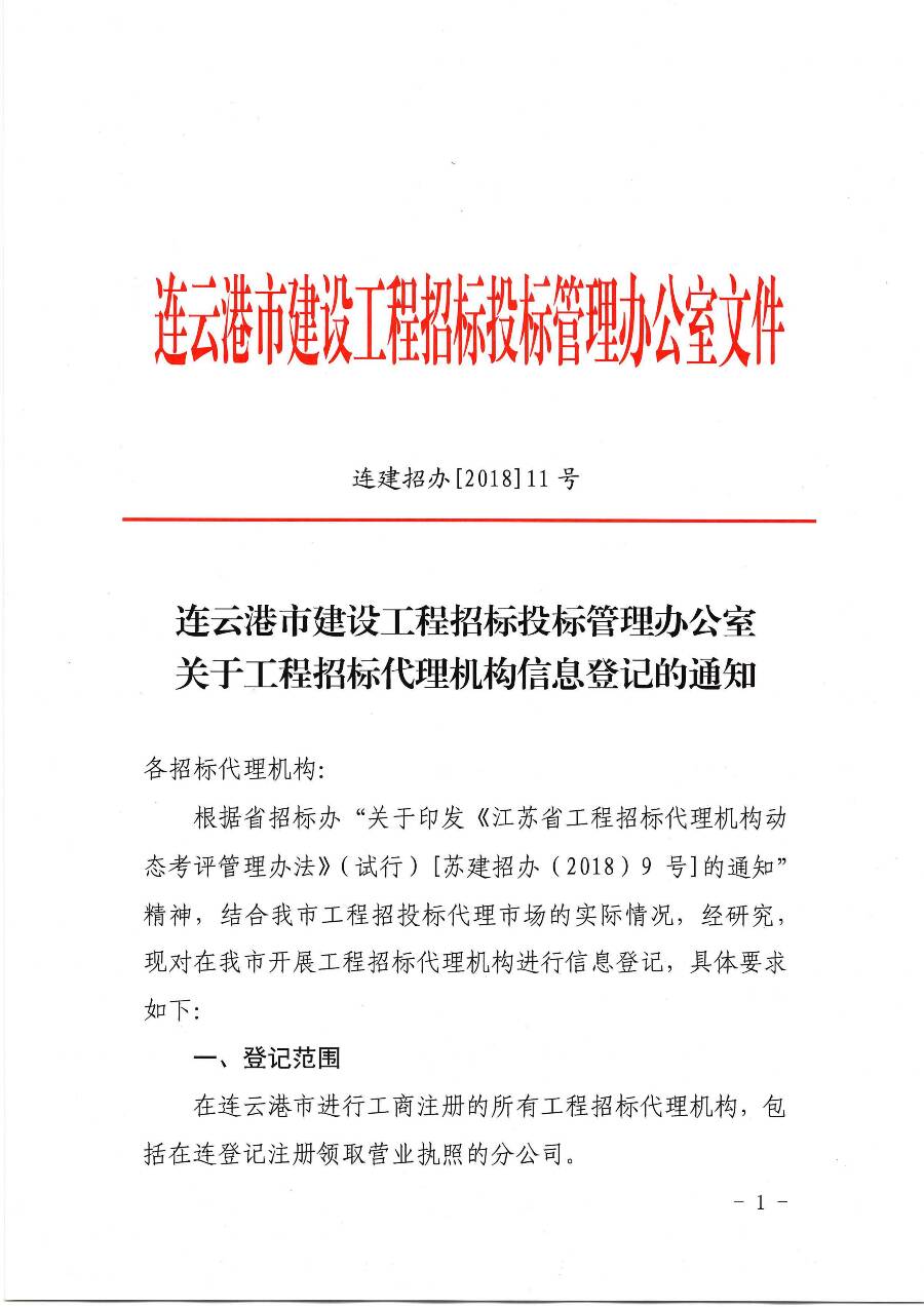 关于工程招标代理机构信息登记的通知 连建招办[2018]11号