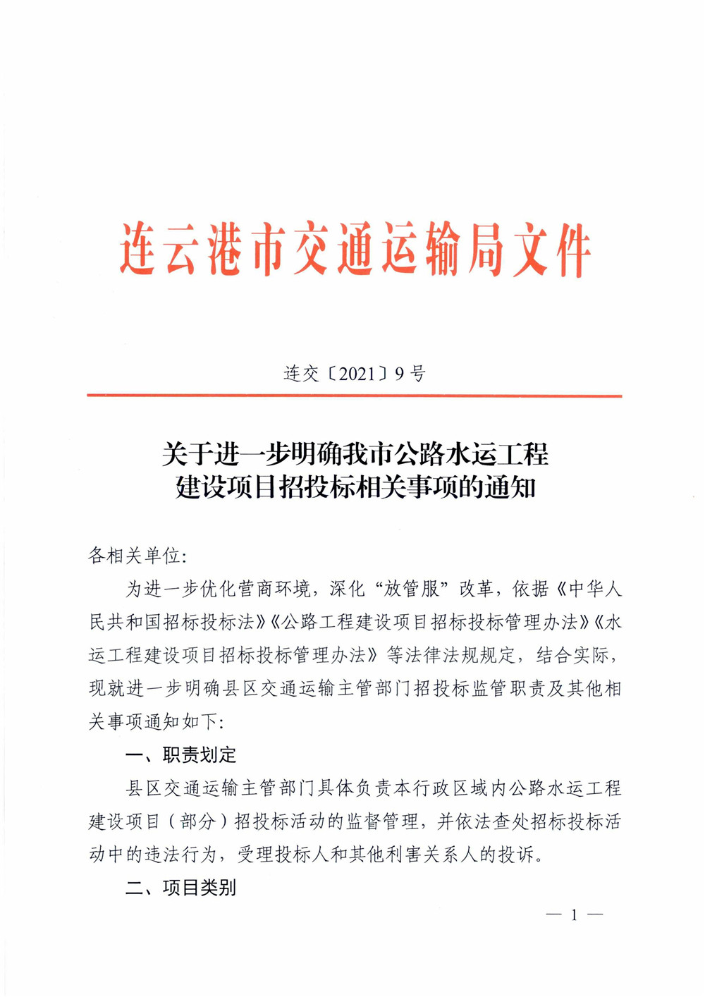 关于进一步明确我市公路水运工程建设项目招投标相关事项的通知