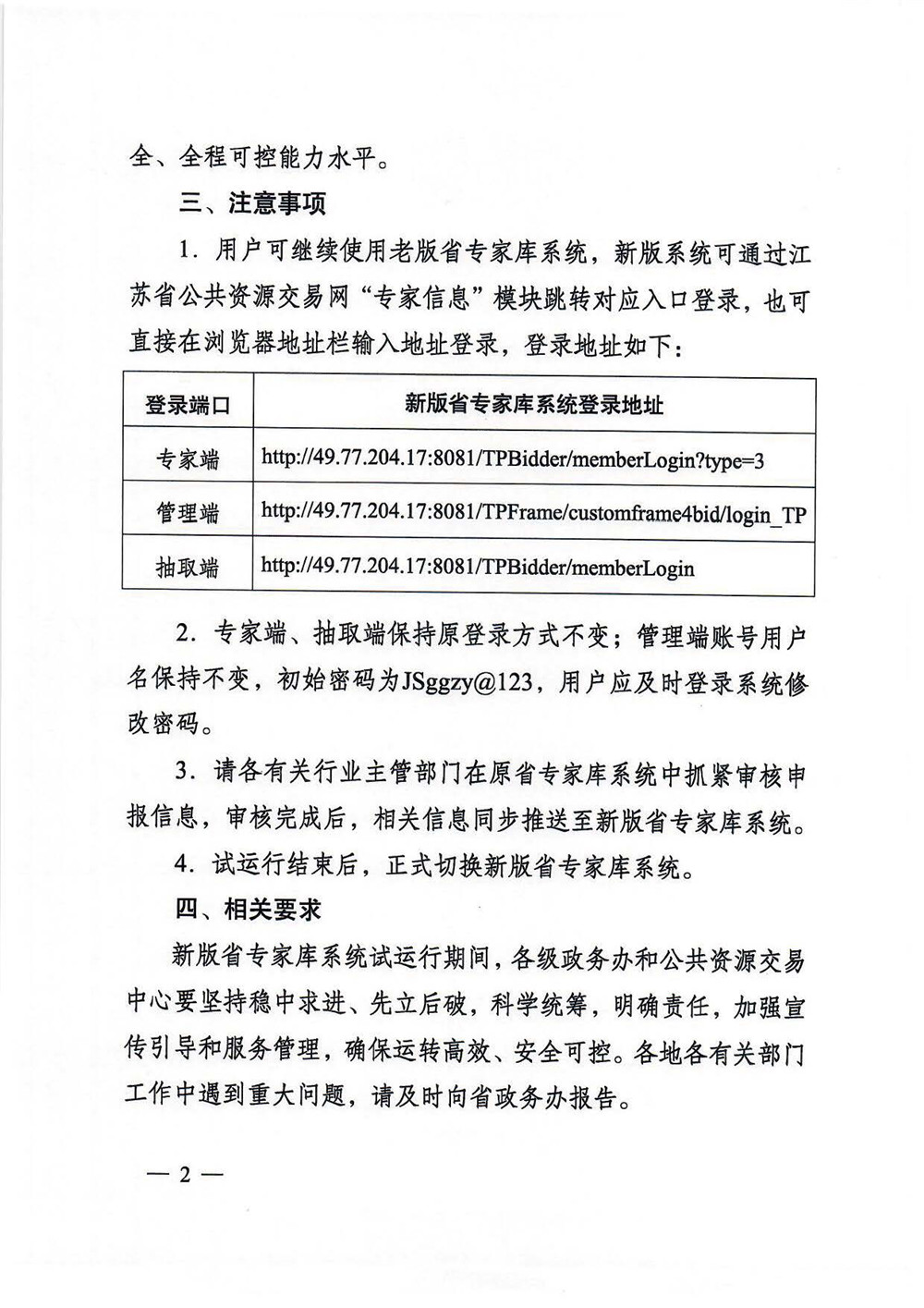 关于新版江苏省综合评标(评审)专家库系统试运行的通知
